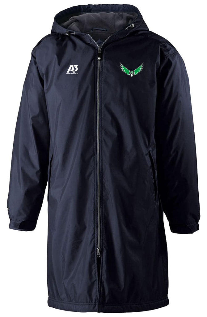The Conquest Jacket keeps you warm and ready to race, no matter the environment. This medium weight, knee-length jacket provides a durable wind and water weather barrier. This water-resistant jacket will keep you warm and comfortable all meet-long.
