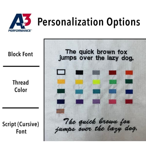 - Embroidered name on Right Chest (Optional $10)